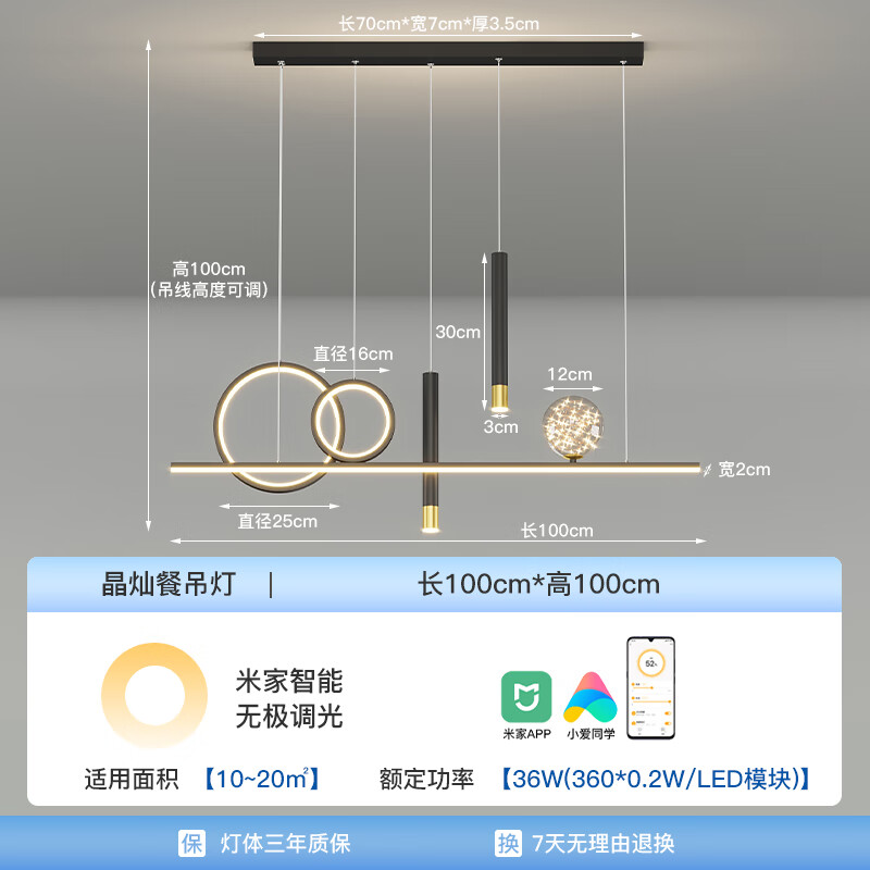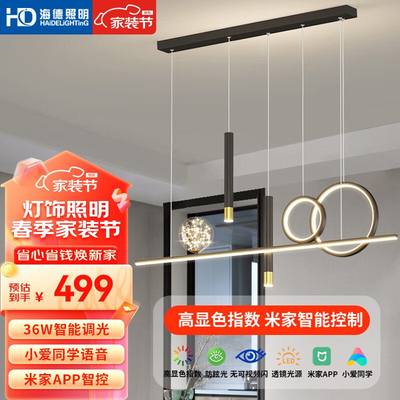 HD米家智能AI语音吊灯 led餐吊灯餐厅灯卧室书房灯现代简约灯饰灯具价格:699.00元!