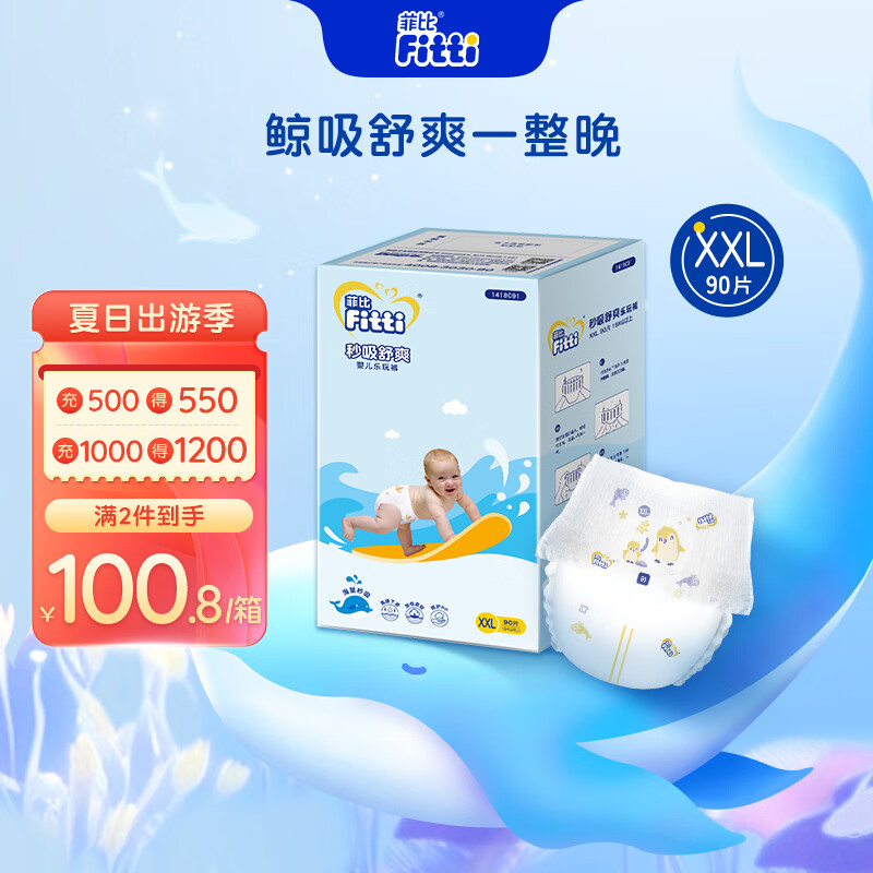 菲比Fitti 秒吸舒爽乐玩裤XXL90片(15kg以上)加加大码裤型舒适绵柔价格:126.00元!