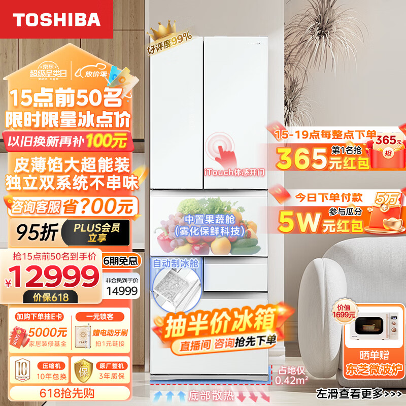 东芝(TOSHIBA)大白桃日式多门六门小户型大容量家用高端电冰箱超薄嵌入一级能效自动制冰GR-RM479WE-PG1B3价格:14998.00元!