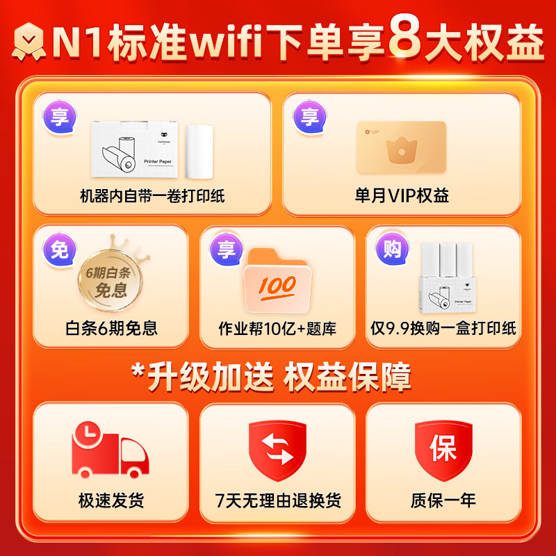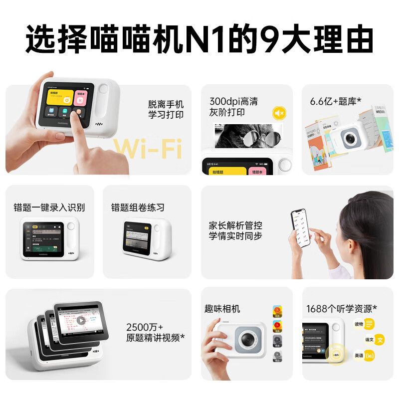 喵喵机N1 高清灰阶作业帮学生错题整理神器家用迷你热敏脱离手机可触屏智能学习错题打印机 WIFI版价格:799.00元!