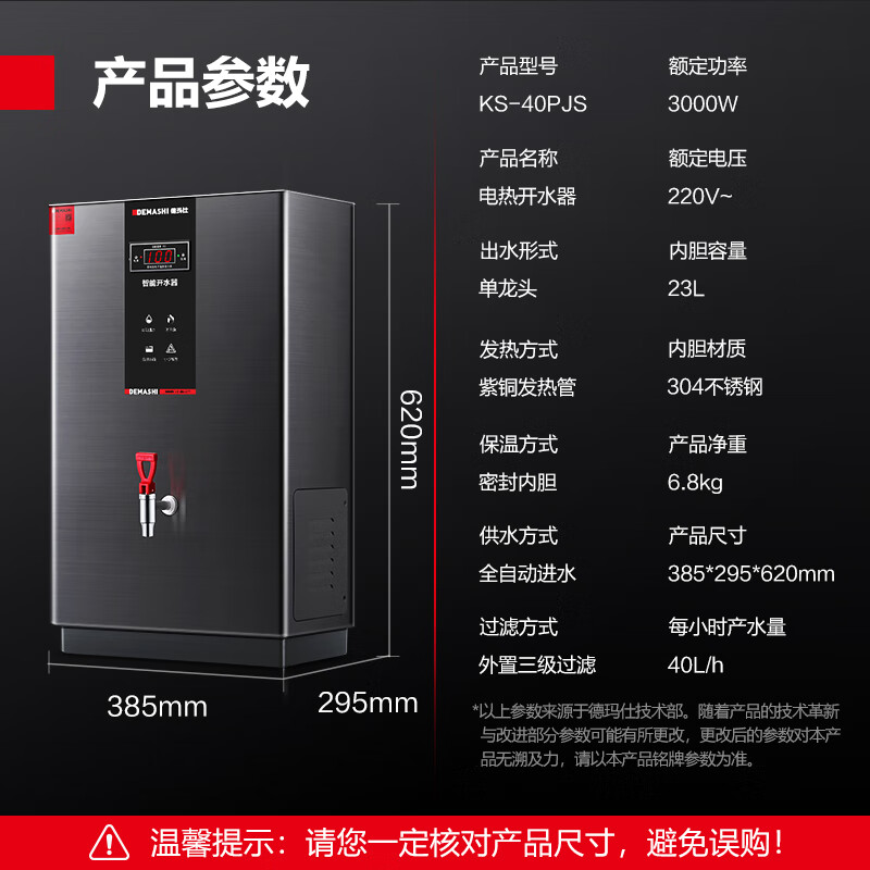 德玛仕(DEMASHI)开水器 商用开水机 电热 全自动进水 304不锈钢 烧水器商用KS-40PJS价格:499.00元!