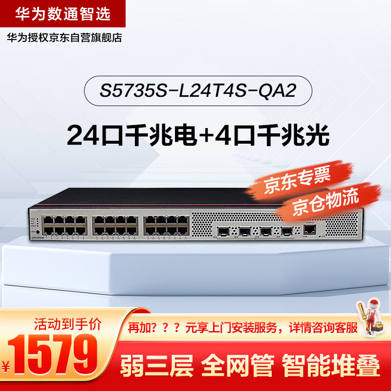 华为数通智选交换机24口千兆以太网+4千兆光纤口企业级网络全管理弱三层公司办公室 S5735S-L24T4S-QA2价格:1579.00元!