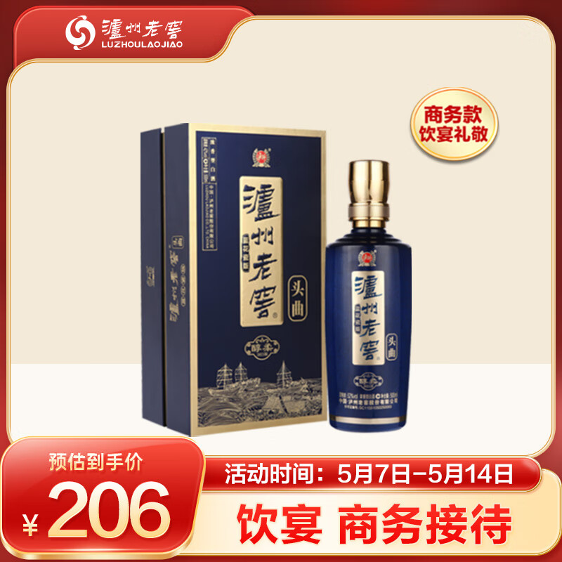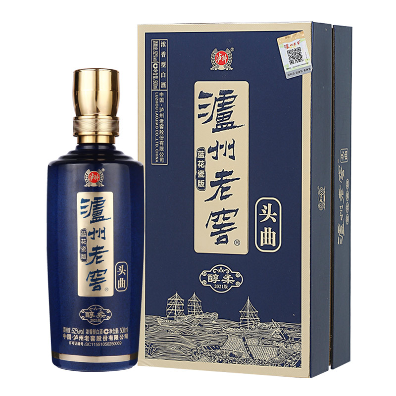 泸州老窖蓝花瓷 头曲 醇柔 浓香型白酒 52度 500ml 单盒价格:191.00元!