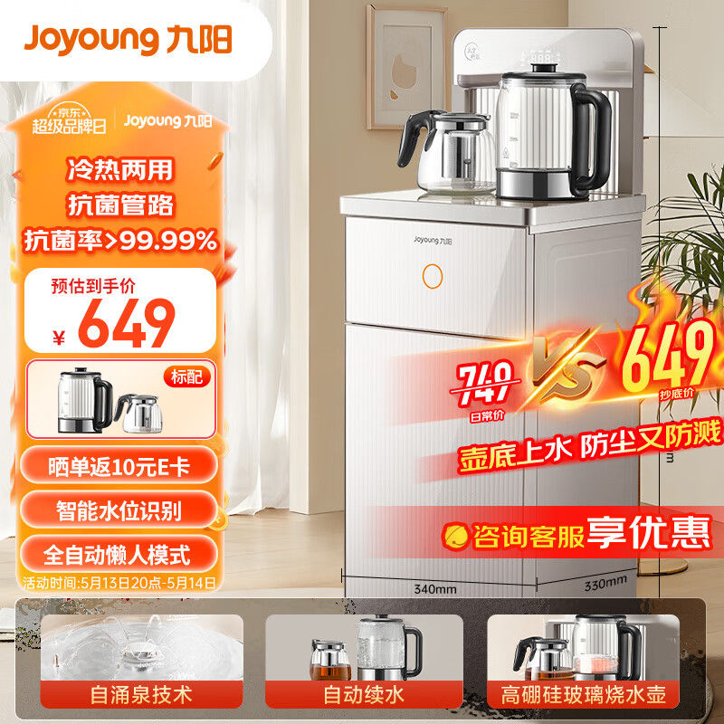 九阳(Joyoung)茶吧机 家用高端智能饮水机一键全自动下进水 多功能遥控立式下置水桶 JCM82C价格:649.00元!