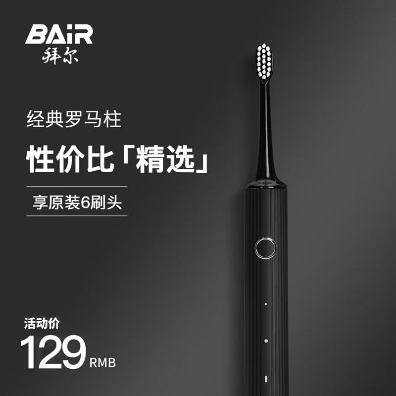 拜尔(BAIR)A8电动牙刷成人声波智能扫振深度清洁美白护龈学生党女生情侣女全自动充电式青少年软毛送男女朋友 【无极变速】豪华6刷头-黑色价格:119.00元!