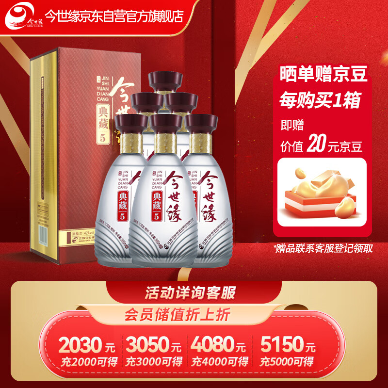今世缘 典藏5 浓香型/幽雅醇厚型 白酒 42度 500ml*6瓶 整箱装价格:468.00元!