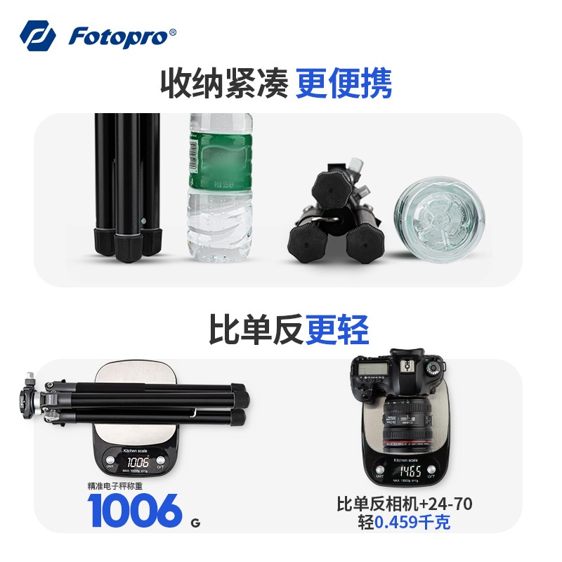 富图宝(Fotopro)FX-1 便携旅拍手机相机摄影三脚支架 赠手机夹 原碳灰价格:449.00元!