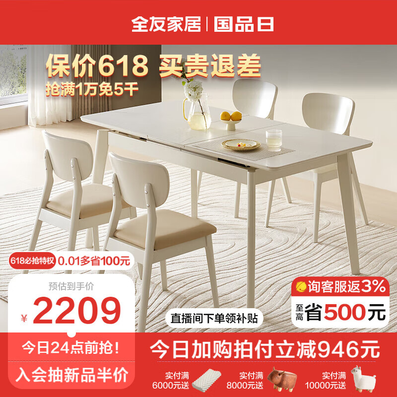 全友家居 餐桌现代简约岩板餐桌可伸缩功能餐桌吃饭桌子家具DW1120C价格:3155.71元!