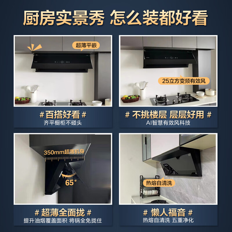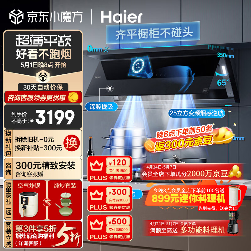 海尔(Haier)抽油烟机 超薄近吸烟灶套装 25m3/min变频有效风顶侧双吸外观 家用吸油烟机燃气灶具C21U1+Q2BE2液价格:3199.00元!