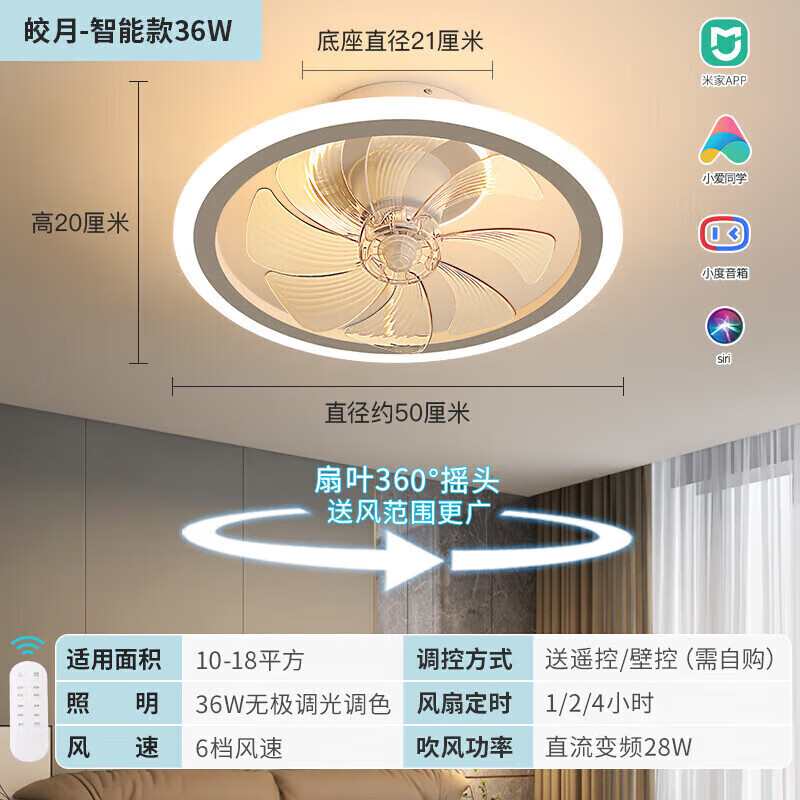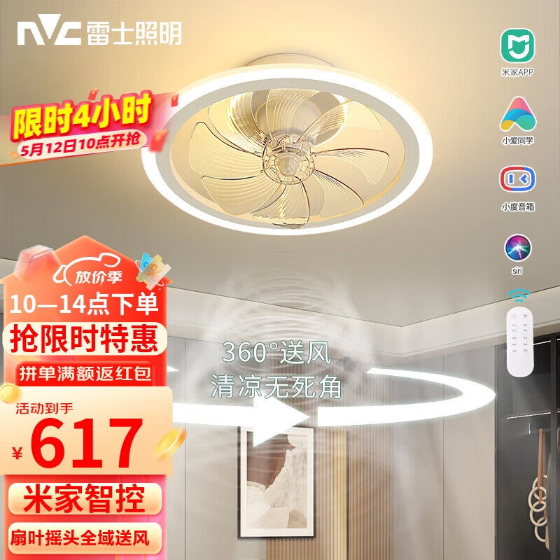雷士(NVC)吸顶风扇灯吊扇灯卧室米家智控摇头语音无极调光调色定时关机36瓦价格:753.00元!
