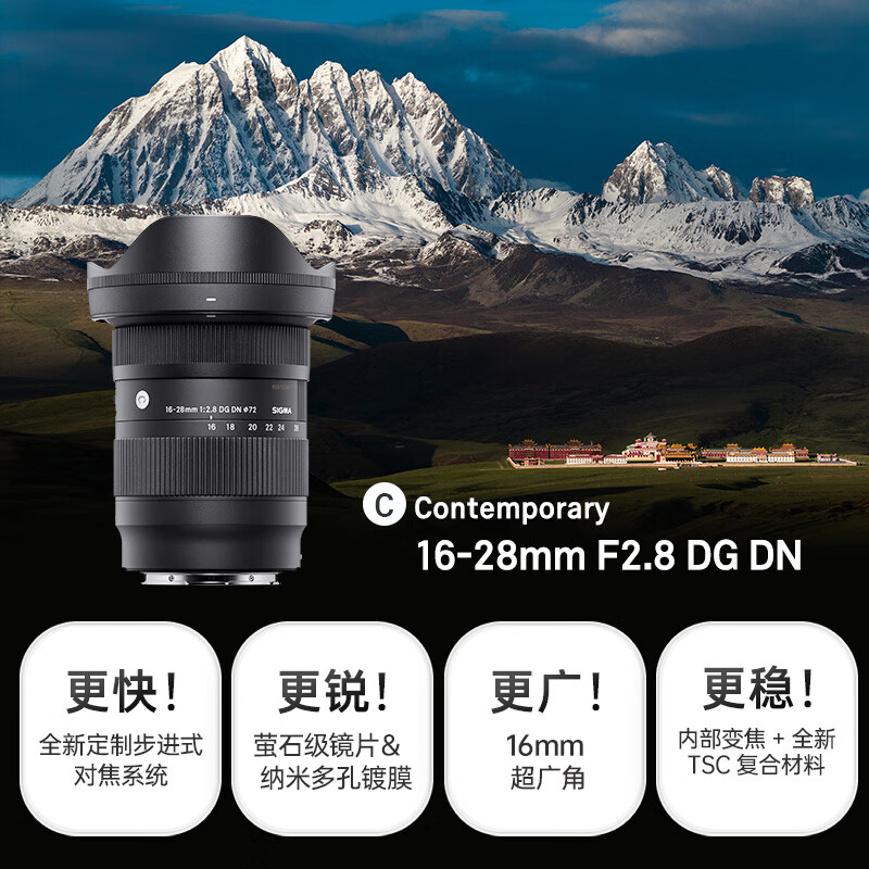 适马(SIGMA)16-28mm F2.8 DG DN |Contemporary 全画幅微单 超广角变焦镜头 风光摄影(索尼E卡口)价格:5180.00元!