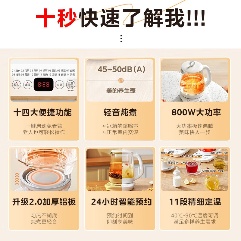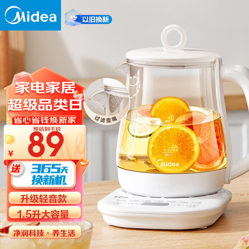 美的(Midea)养生壶 煮茶器 烧水壶烧水 煮茶壶 电水壶智能恒温电热水壶开水壶 多段保温迷你玻璃花茶壶 经典低音款Y15X-J 1.5L价格:119.00元!
