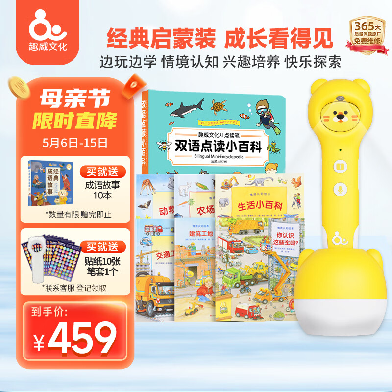 趣威文化S1点读笔幼儿早教机 双语启蒙经典套装 儿童玩具男女孩生日礼物价格:459.00元!