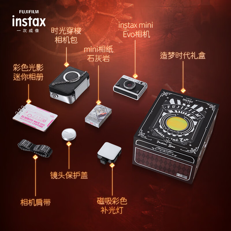 富士instax立拍立得 一次成像相机 mini Evo 【造梦时代】礼盒套装 双包相纸*2套装价格:1943.00元!