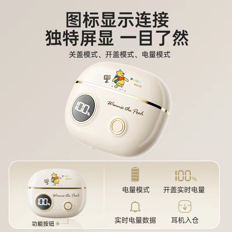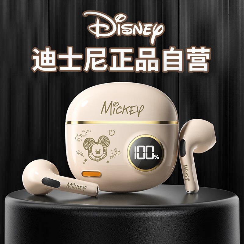 迪士尼(DISNEY)【千元音质|LED智能显屏】真无线蓝牙耳机半入耳式游戏降噪隐形跑步运动生日礼物S190【笑脸米奇】价格:109.00元!
