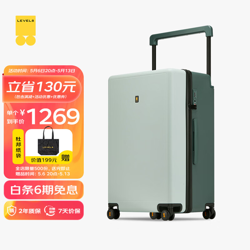 地平线8号(LEVEL8)行李箱男女密码拉杆箱 大旅行家大容量26英寸宽拉杆PC箱 抹茶撞色价格:1399.00元!