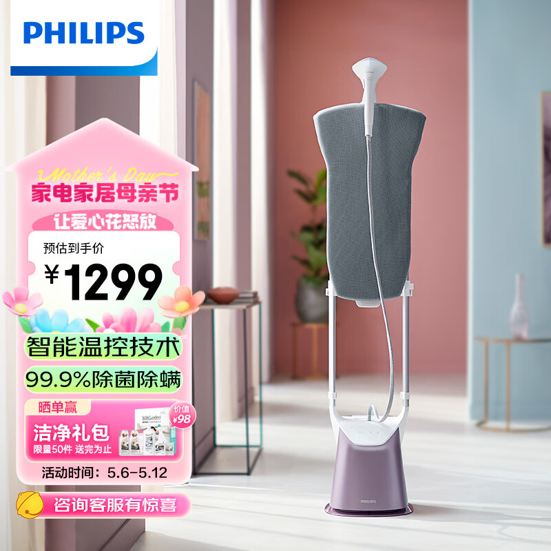 飞利浦(PHILIPS)立式增压熨烫机蒸汽挂烫机家用除菌除螨双杆带烫衣板GC626/38价格:1299.00元!