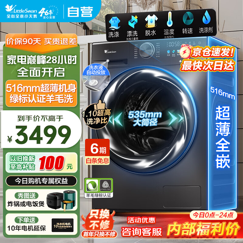 小天鹅(LittleSwan)洗衣机全自动家用10公斤小乌梅水魔方单洗滚筒洗衣机超薄全嵌一级能效 智能投放 以旧换新M18T价格:3299.00元!