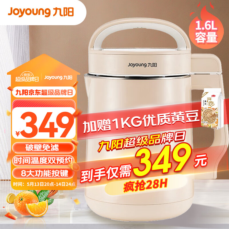 九阳(Joyoung)豆浆机1.3-1.6L破壁免滤大容量智能双预约全自动榨汁机料理机价格:369.00元!