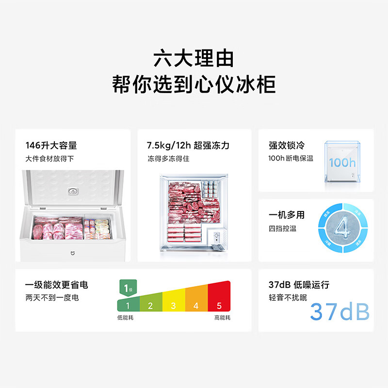 米家小米146升低霜家商两用小冰柜小型冷藏冷冻冷柜小冰箱 一级能效节能低噪顶开门BD/BC-146MDM价格:729.00元!