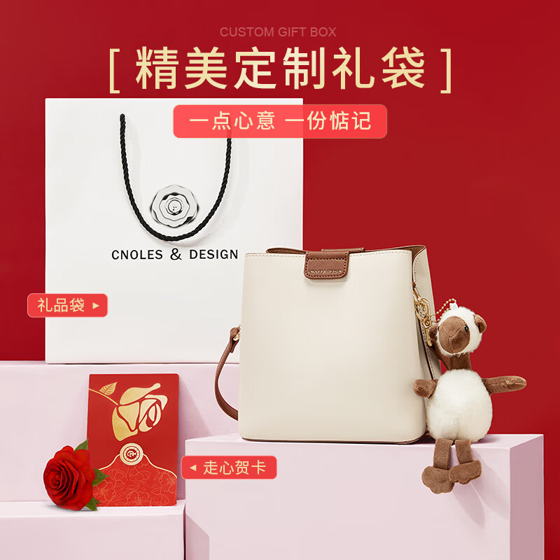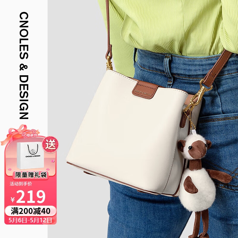 蔻一(Cnoles)水桶包女士包包牛皮单肩包女款高端品牌大容量斜挎包女式百搭背包实用走心生日520情人节礼物送女友老婆 阳光暖白价格:259.00元!