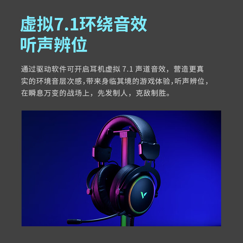 雷柏(Rapoo) VH300S 有线耳机 虚拟7.1声道电竞游戏 USB电脑耳麦 头戴式立体环绕声 黑色 价格:109.00元!