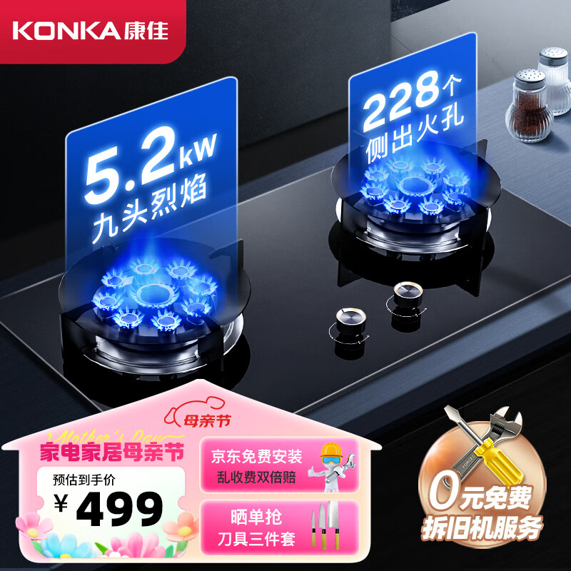 康佳(KONKA)灶具燃气灶双灶 双九孔5.2kW聚能猛火爆炒专用 家用台式/嵌入式钢玻面板 JZT-B902Y(天然气)价格:498.00元!