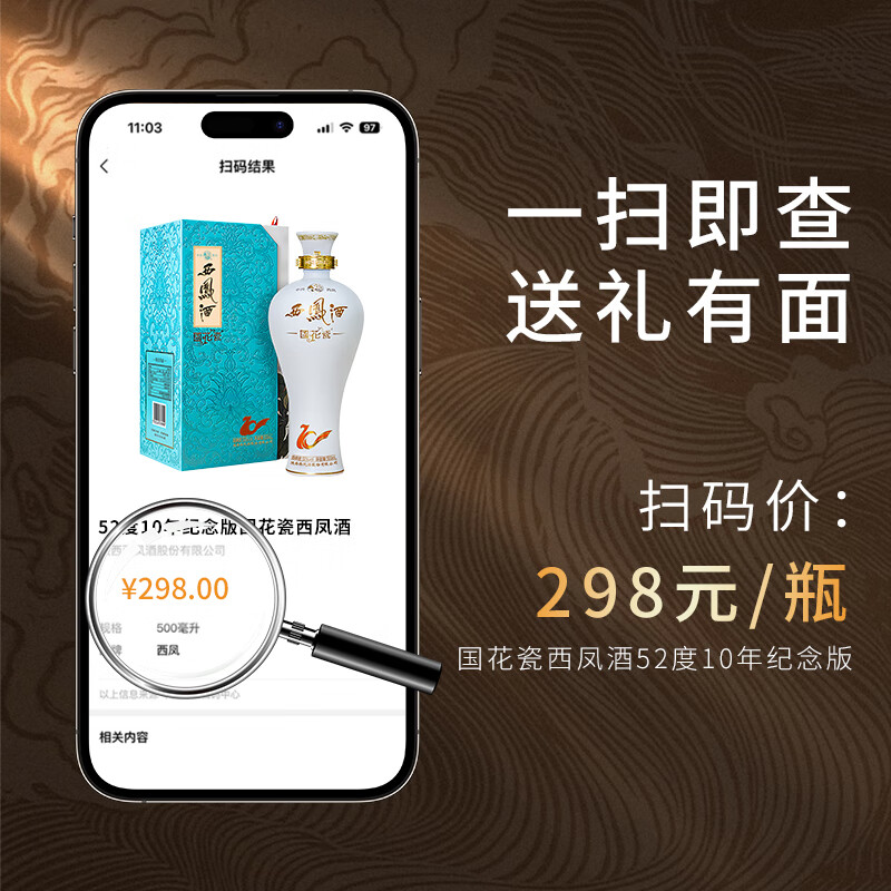 西凤酒 国花瓷国潮10年纪念版 52度 500ml 单瓶装 凤香型白酒价格:155.00元!