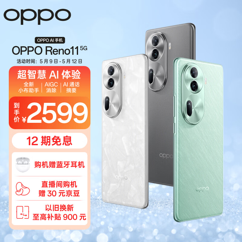 OPPO Reno11 5000万单反级人像三摄 天玑8200 旗舰芯 长续航 12GB+256GB 曜石黑 学生5G拍照 AI手机价格:2599.00元!