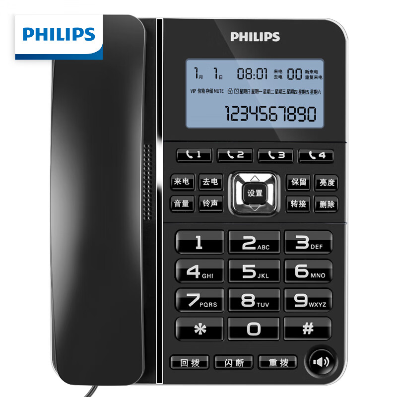 飞利浦(PHILIPS)电话机座机 固定电话 办公家用 一键拨号 转接 来电报号 CORD228黑色价格:149.00元!