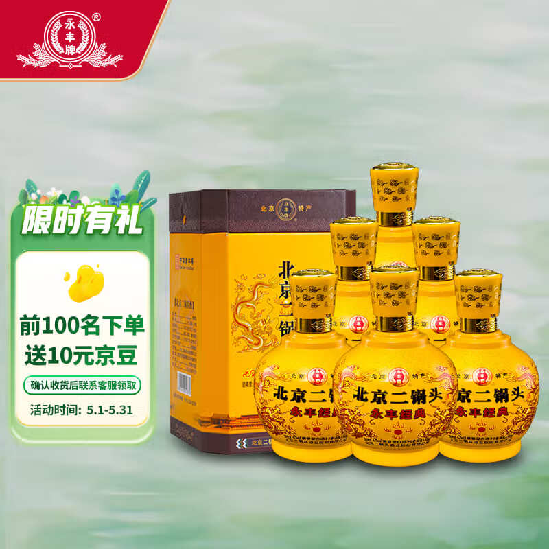 永丰牌 北京二锅头经典黄坛清香型白酒42度500ml*6瓶礼盒装价格:209.80元!