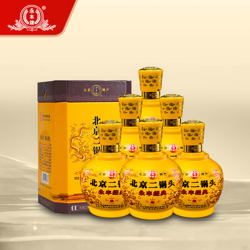商品名称:永丰牌永丰牌北京二锅头白酒永丰经典系列黄坛清香型42度500ml*6瓶整箱装礼盒酒