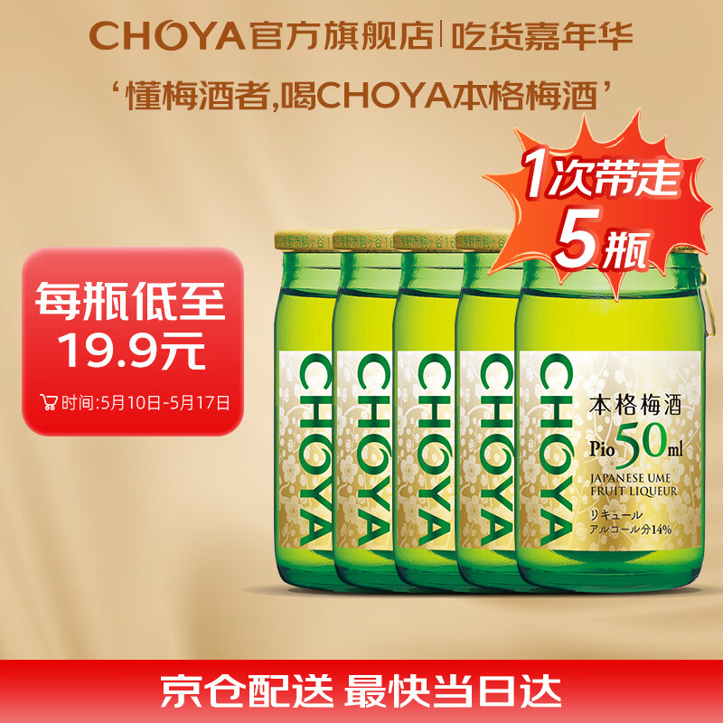 CHOYA俏雅蝶矢带梅子本格梅酒50ml*5进口青梅酒便利店调酒微醺小酒送礼价格:149.50元!