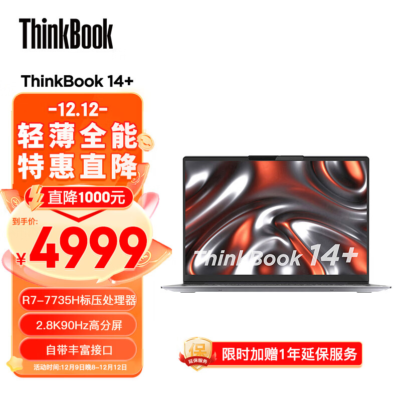 ThinkPad联想ThinkBook 14+ 2023 AMD锐龙标压笔记本电脑 14英寸标压轻薄办公本R7-7735H 16G 512G SSD 2.8K 90Hz价格:4999.00元!