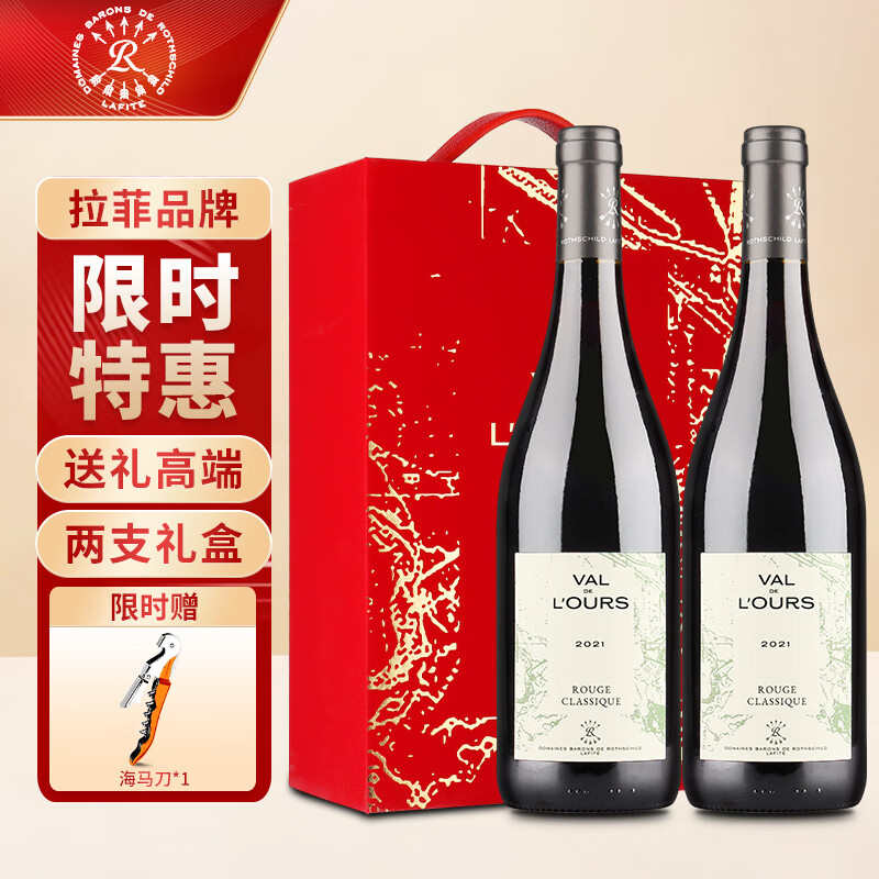 拉菲(LAFITE)雾禾山谷干红葡萄酒 750ml*2瓶 进口红酒礼盒装(经典红)价格:798.00元!
