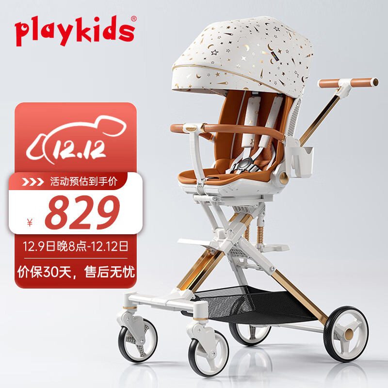 playkids普洛可婴儿推车遛娃遛神器溜娃童车可坐可躺双向推行X6-4星价格:1329.00元!