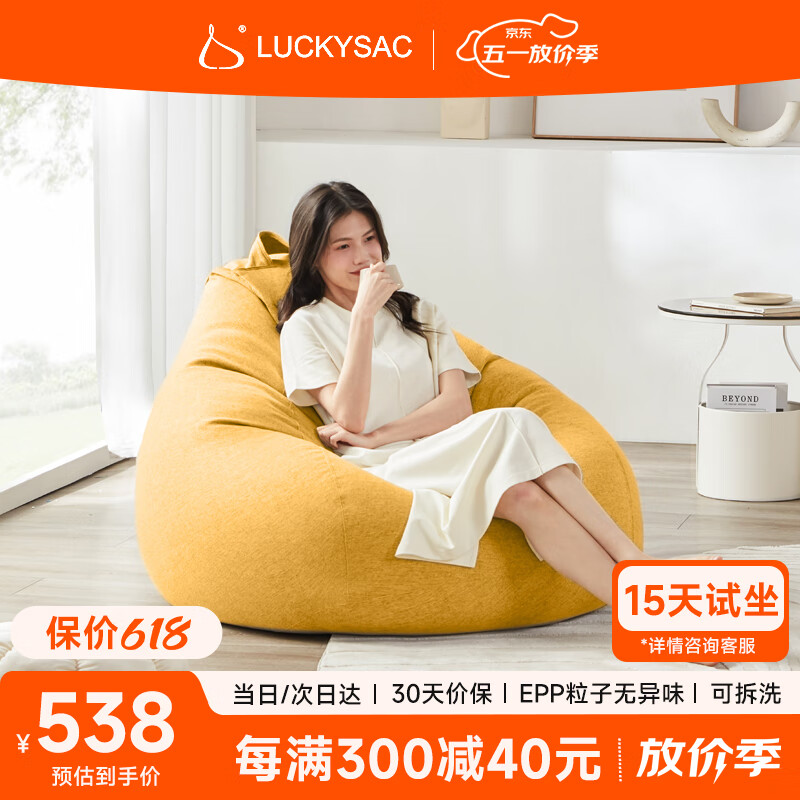 LUCKYSAC懒人沙发豆袋EPP 单人布艺客厅卧室阳台小沙发 尊享款玉米黄价格:618.00元!