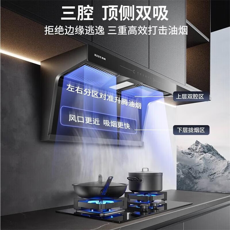 百得(BEST)华帝出品 顶侧双吸变频抽油烟机7字型25m3挥手感应吸油烟机厨房烟灶联动套装E712+QE62(天然气)价格:3198.00元!