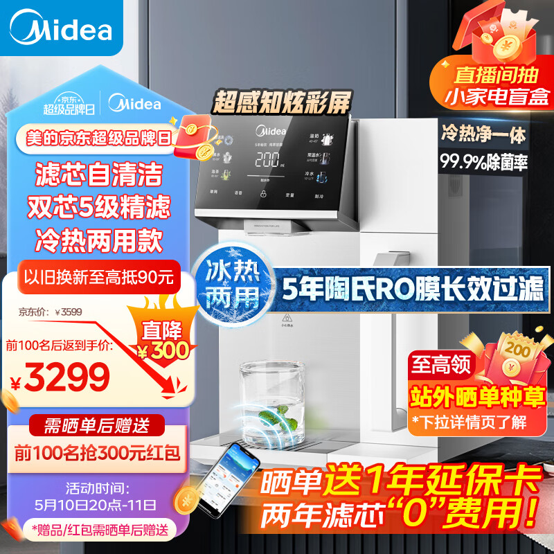 美的(Midea)魔方台式净水器加热直饮一体机净饮机冷热饮水机家用即热式净饮一体机RO反渗透免安装 JD2288T-RO价格:3599.00元!
