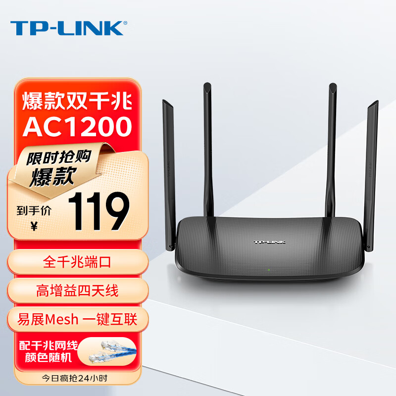 TP-link双千兆路由器 易展mesh分布式 AC1200无线家用穿墙 5G双频 WDR5620千兆易展版 配千兆网线 IPv6价格:129.00元!