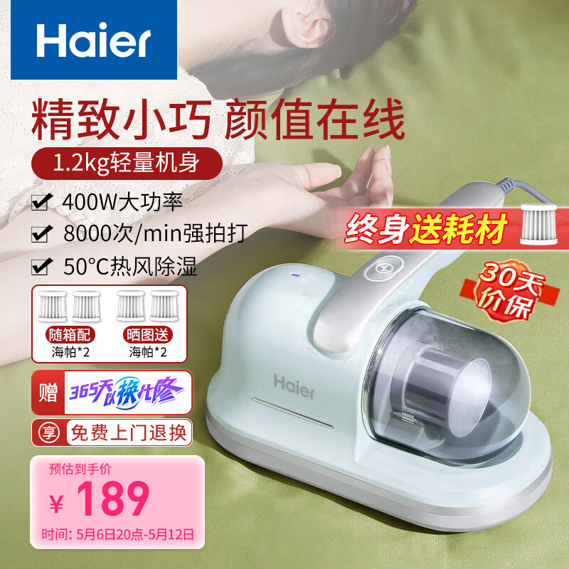 海尔(Haier)除螨仪家用床上手持非无线双拍打HZ-C602 紫外线杀菌除螨 太空舱旋风吸尘价格:199.00元!