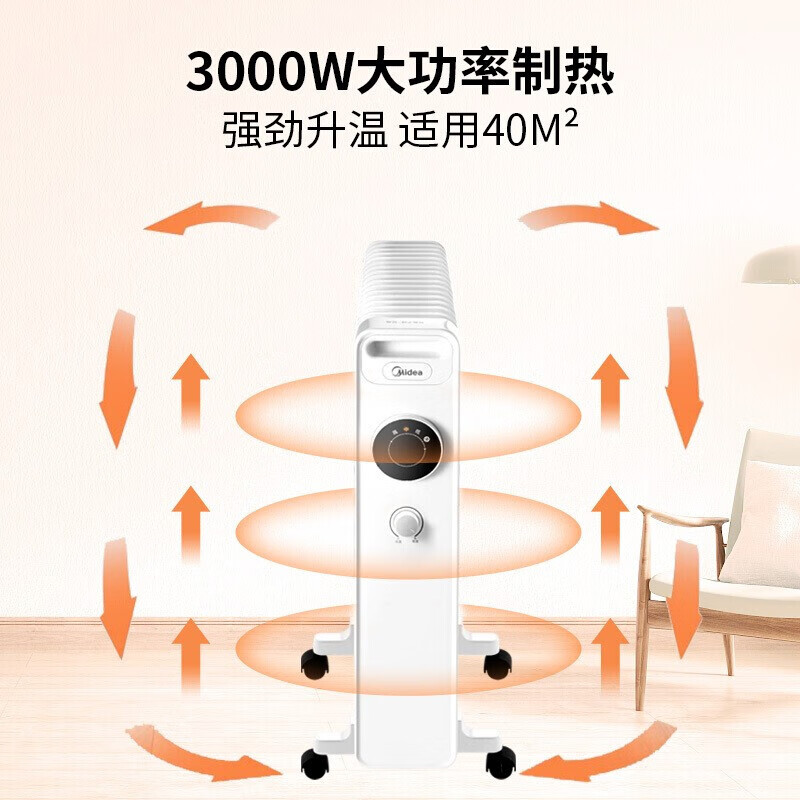美的(Midea)取暖器电暖器烤火炉电热油汀3000W大功率17片自动控温干衣晾衣架电暖气家用NYW-MG价格:638.00元!