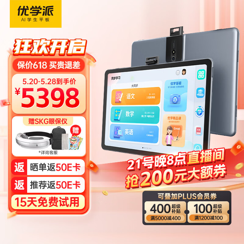 优学派AI护眼学习机U90 学生平板电脑8+256G 12.5英寸网课机 小学中学全科全龄段护眼家教机 英语点读机价格:5398.00元!