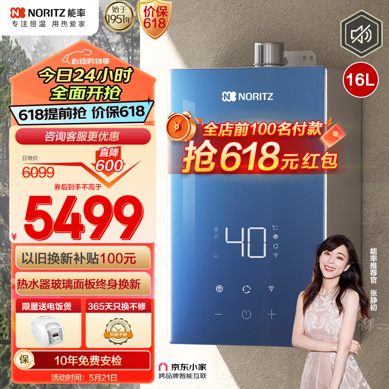 能率(NORITZ)零冷水燃气热水器16升 双智控 幻彩系列屏 水量伺服器 GQ-16EX6AFEXQ(JSQ31-EX6AQ)天然气价格:6099.00元!
