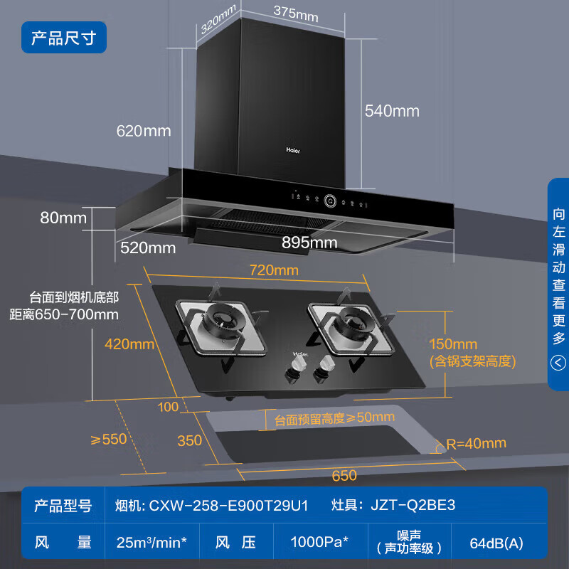 烟机安装尺寸:900±50mm