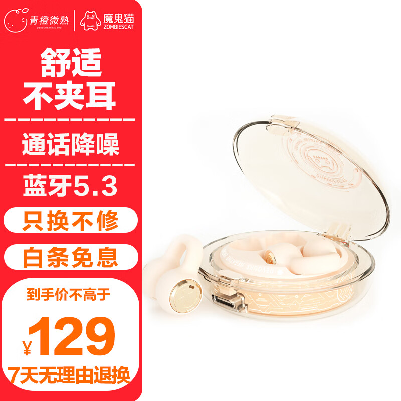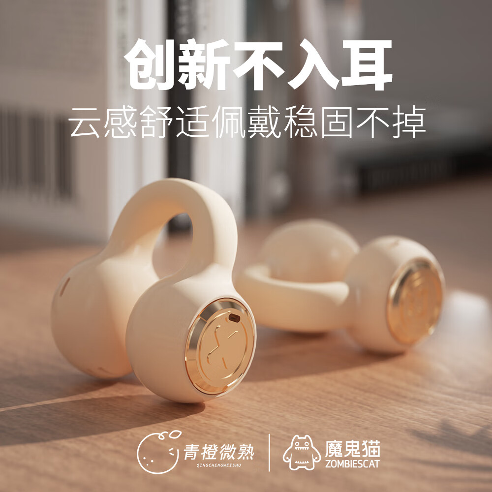 青橙微熟魔鬼猫B3骨传导概念真无线蓝牙耳机 不入耳运动跑步通话夹耳式耳麦通话降噪骑行耳夹式耳机 卡其色价格:139.00元!