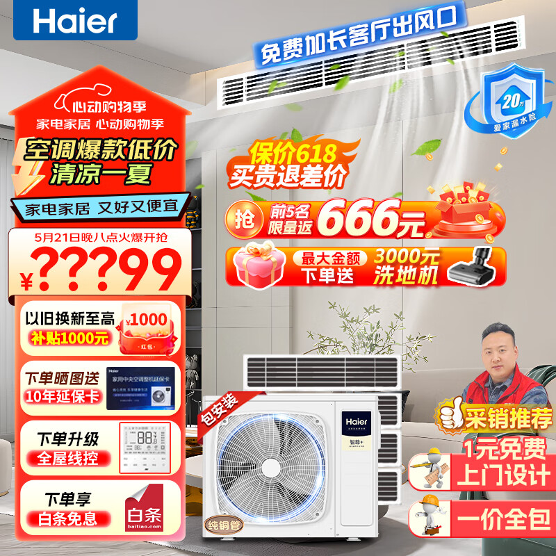 海尔(Haier)中央空调一拖四风管机4匹小多联一级能效全直流变频嵌入式智尊+ RFC100MXSAVA(G)价格:20499.00元!