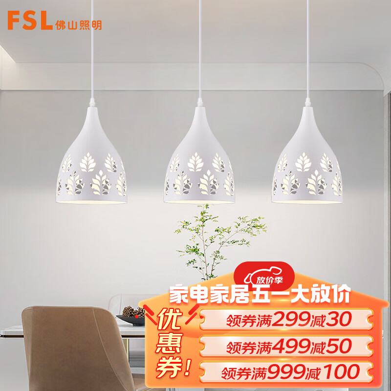FSL佛山照明LED吊灯餐厅灯具三头吸顶餐吊灯饰创意吧台灯长条50623价格:239.00元!