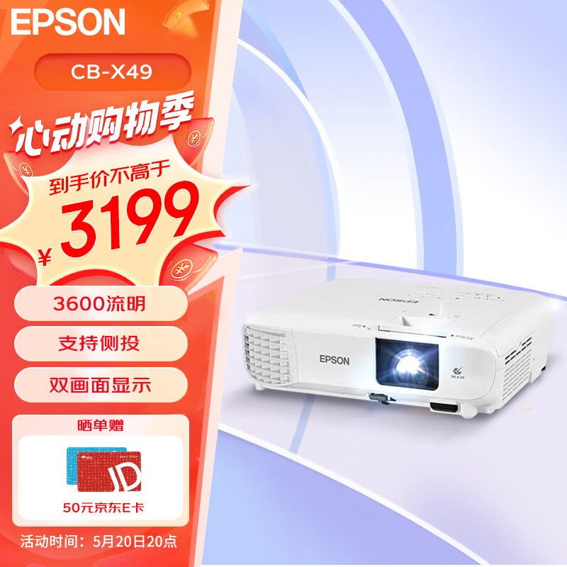 爱普生(EPSON)CB-X49 投影机 投影仪办公 培训(3600流明 HDMI高清接口 3LCD 支持侧面投影)价格:3199.00元!