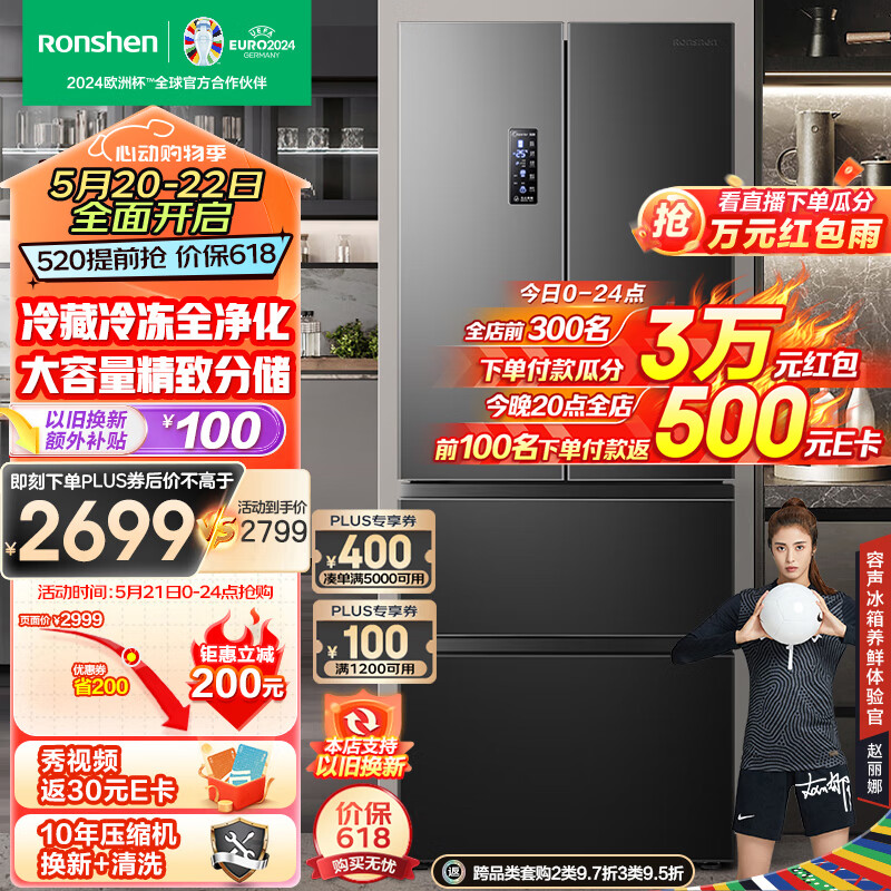 容声(Ronshen)离子净味456升变频一级能效法式多门四开门嵌入式冰箱家用无霜大容量BCD-456WD18MP母婴变温价格:2999.00元!